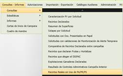 Muestra un grid con los datos de Recintos Reales de Pastos Comunales Declarados en la campaña anterior para solicitudes de Pastos y con uso distinto de PA, PR y PS.