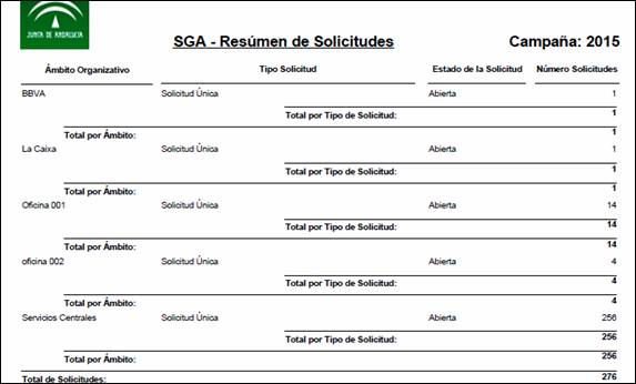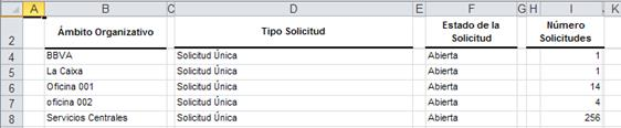 Para generar el informe del Resumen de solicitudes se realizarán, si se desea, los filtros de Tipo y Estado y se pulsarán los distintos botones según el formato en el que se quiera obtener: