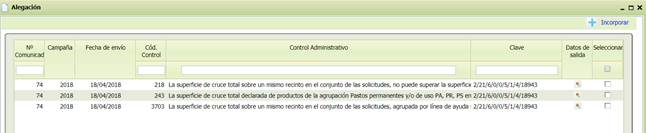 - [Borrar] Permite la selección del control correspondiente para su borrado.
