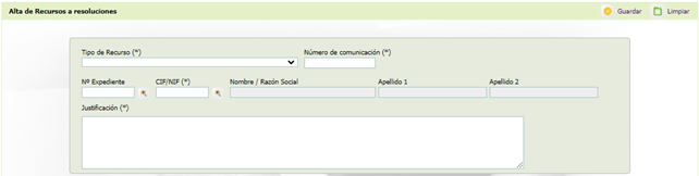 - [Nº Expediente] Número de expediente para el que se da de alta el recurso de resolución.