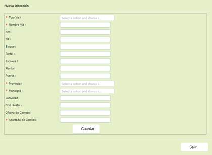 podremos añadir una nueva dirección, complementando los siguientes campos: