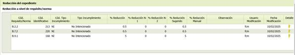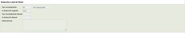 - [% reducción Sugerido] Muestra el % de reducción sugerido en función del tipo de incumplimiento
