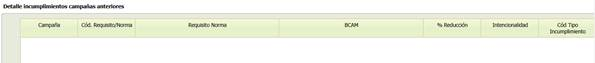 Muestra información de los incumplimientos de los años anteriores para la evaluación y clasificación de los incumplimientos de la campaña actual