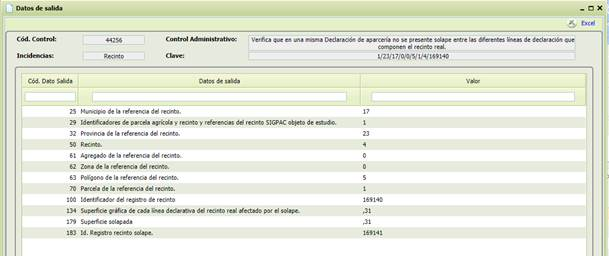 -[Clave] Información adicional de la incidencia según el control que se trate. Si la incidencia es general mostrará el número del control, si es a nivel de recinto mostrará su identificador, y si es a nivel de línea aparecerá su literal. Todos los campos anteriores disponen deCaja de textopara filtrado.