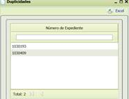 -    [Duplicidades]: Permite consultar los controles con los que se han registrado duplicidades. Si se pulsa la lupa muestra las duplicidades en la siguiente pantalla: