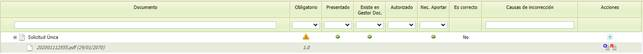 Si hay agregado un documento tiene asociados un icono en la última columna Acciones, con los que se podrán realizar las funcionalidades asociadas a documento concreto: