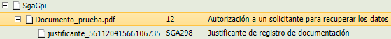 3. Al finalizar el alta correctamente el documento y el justificante correspondiente se añaden en el formulario en una nueva carpeta llamada SgaGpi.
