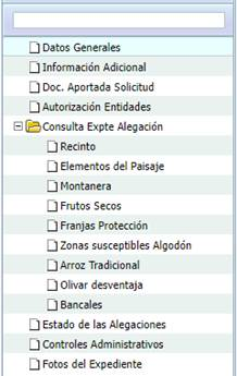 El Formulario que forma el Marco de Opciones de la Consulta del Expediente se encuentra a la izquierda de la pantalla y presenta el siguiente aspecto: