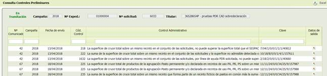 Opción que permite la consulta de los controles preliminares asociados a un determinado expediente con los datos de salida correspondientes.