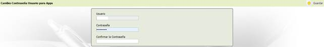 Mediante esta opción, será posible cambiar la contraseña del usuario para apps. Para acceder a esta opción, será necesario que el usuario se haya dado de alta previamente como usuario para apps en la opción Alta de nuevos usuarios para Apps. La pantalla presenta el siguiente aspecto: