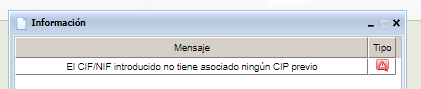 Cuando se lanza el Olvido CIP de un NIF existente en el sistema pero que no está dado de alta el catálogo de parametrización "Código de Identificación Personal" muestra mensaje "El CIF/NIF introducido no tiene asociado ningún CIP previo"