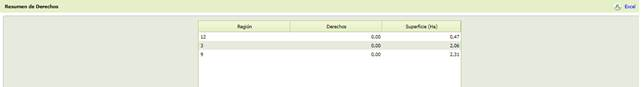 Resumen del número de derechos asignados por región y las superficies admisibles para ABRS.