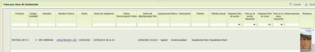 - [Requiere foto en zona] Indica si en la línea de declaración a la que está asociada la foto se requiere la realización de una fotografía georreferenciada en una zona requerida como consecuencia de un control por monitorización.
