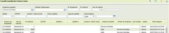 Se elige cualquiera de los campos descritos y se introduce el valor que se considere oportuno, para utilizarlo como criterio de búsqueda. A continuación se pulsa el botón “Consultar”, que se encuentra a la derecha del título del formulario. Como resultado de esta consulta, se muestra el listado de expedientes de SgaGpi, así como una serie de datos mínimos de los mismos.