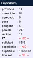 Ejemplo de propiedades de parcela SIGPAC (izq.), recinto SIGPAC (centro) y LDG (der.)