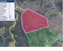 * Nota: en caso de que la línea de declaración seleccionada no tenga representación gráfica (bien porque se trate de un recinto de pastos en común o de concentración parcelaria, bien porque no se haya cargado la caché del SigPac que contiene el gráfico del recinto seleccionado), el componente gráfico no podrá mostrar dicho recinto.