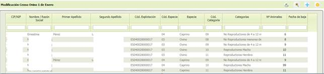 Con perfil modificación, por medio del botónse podrán dar de alta nuevos registros de Censo Ovino o Caprino a 1 de enero. Pulsando el botónse grabarán los cambios.