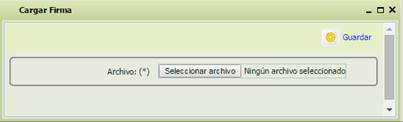 Se pulsará el botónpara cargar la Firma y se pulsará para asociarlo al registro y salir de esta pantalla. Sólo se podrán adjuntar archivos con extensión .jpg, .bmp y .tif.