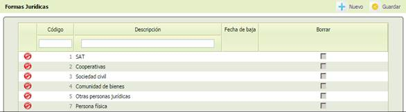 ] Casilla de verificación que permite realizar el borrado físico.
