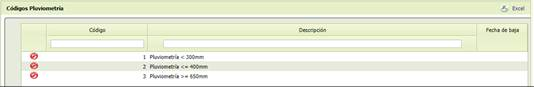 Catálogo de consulta en el que encontramos los rangos de pluviometría establecidos: