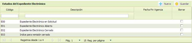 -[Borrar] Casilla de verificación que permite realizar el borrado físico.