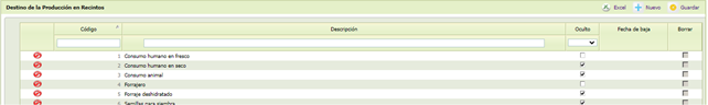 -[Oculto] Campo que permite parametrizar los Destinos que se ofrecen en el desplegable en campo Destino de cultivo de la pantalla Recintos
