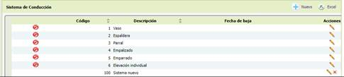 Catálogo de consulta y modificación de los distintos tipos de sistemas de conducción para viñedo. Presenta el siguiente aspecto: