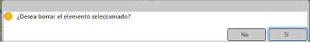 Permite borrar el registro. Muestra el siguiente mensaje de confirmación