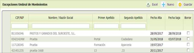 La pantalla dispone de funcionalidad Excel para exportar la información de la tabla al PC del usuario.