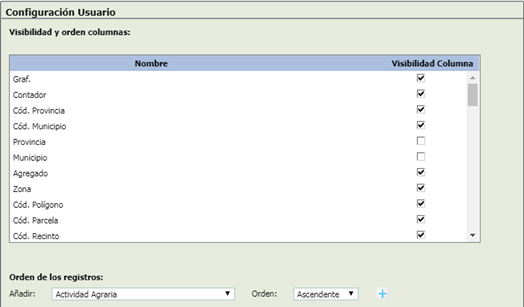 - [Visibilidad Columna] Casillas para ocultar las columnas que el Administrador determine.
