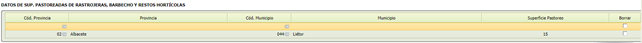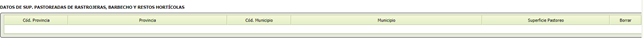 asociado (Nuevo Datos de sup. pastoreadas), mediante el cual se podrá añadir una nueva entrada a la tabla “Datos de Sup. Pastoreadas de Rastrojeras, Barbecho y Restos hortícolas”, que contiene los siguientes campos: