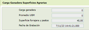 -[Carga Ganadera] Resultado de la carga ganadera, con dos decimales, expresa el promedio de UGM’s calculado para el productor dividido por la suma de la superficie (ha) declarada de pasto en su solicitud.