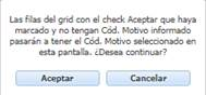 5.Si pulsamos Aceptar, el motivo seleccionado se traslada a las filas en las que se marcó el check Aceptar.