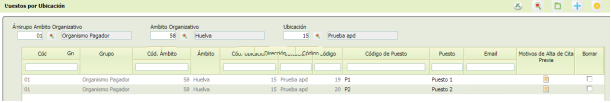 Desde esta opción se podrán configurar los puestos por ubicación para la solicitud de cita previa.
