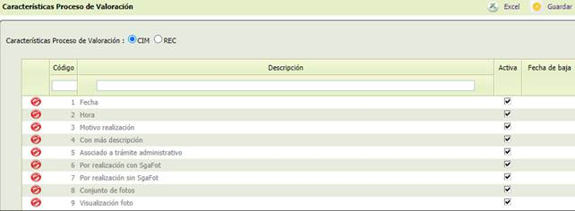 -[Características Proceso de Valoración] Podrá seleccionarse CIM o REC.