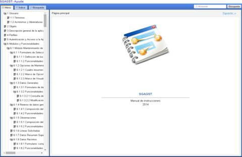 Nos abre en otra página la Ayuda de SGAGST. Posee tres pestañas con: