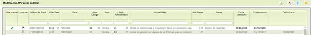 se podrán dar de alta nuevos registros de APS Vacas Nodrizas.