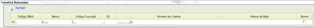 2. Si se quisieran dar de alta más de una Cuenta Bancaria a un registro, bastaría con pulsar el botón una vez tienes alguna cuenta ya creada.