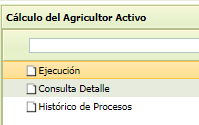 Se visualiza el siguiente Marco de Opciones del Cálculo del Agricultor Activo, en la parte izquierda de la pantalla