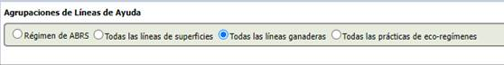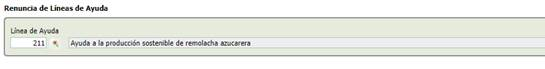 - [Agrupaciones de líneas de ayuda] Indica el grupo de líneas de ayudas a las que se renuncia, pueden ser:
