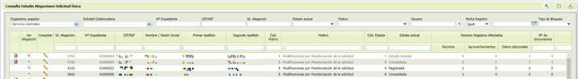 Mediante esta opción se puede consultar tanto la información general de la alegación como el estudio de las alegaciones a la Solicitud Única. Completando los filtros con los valores deseados y pulsando sobre