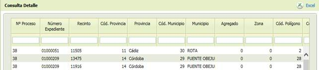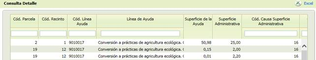 En detalle se pueden consultar los recintos y líneas que han sido modificados tras la actualización y exportar los datos a Excel