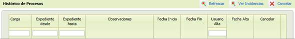 - [Expediente hasta] Cuando se lanza un proceso parcial, este campo indica el número de expediente seleccionado hasta el cual se ejecutó el proceso.