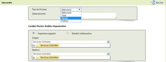 - [Tipo de Proceso] Lista de valores con las opciones de ejecución del proceso (total, parcial o fichero).