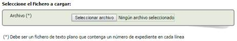 Si se elige la opción fichero se deberá adjuntar un fichero tipo TXT con el listado de expedientes: