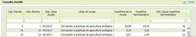 En detalle se pueden consultar los recintos y líneas que han sido modificados tras la actualización y exportar los datos a Excel
