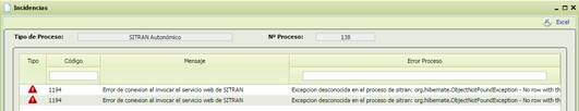 Se podrán consultar los errores y visualizar las incidencias que han hecho que un proceso no se haya finalizado correctamente.