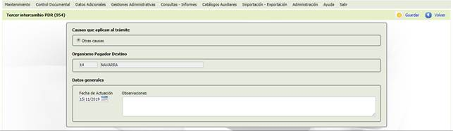 - Accedemos a la pantalla de Tercer intercambio (954), donde se rellenarán todos los datos obligatorios.