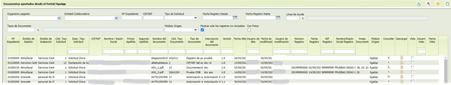 Desde esta opción se podrán consultar los documentos aportados por el solicitante a través del Portal del ciudadano, SgaApp, SgaFot.