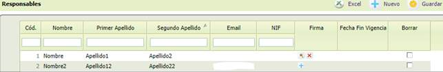 - [Cód.] Código del responsable. Campo numérico secuencial que se calcula automáticamente según se producen altas en el catálogo.